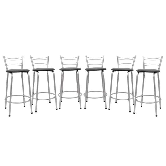 Kit 6 Banquetas para Balcão Flórida Prata 60cm Cozinha Gourmet Bistrô Bancada Piscina Área de Lazer Preto