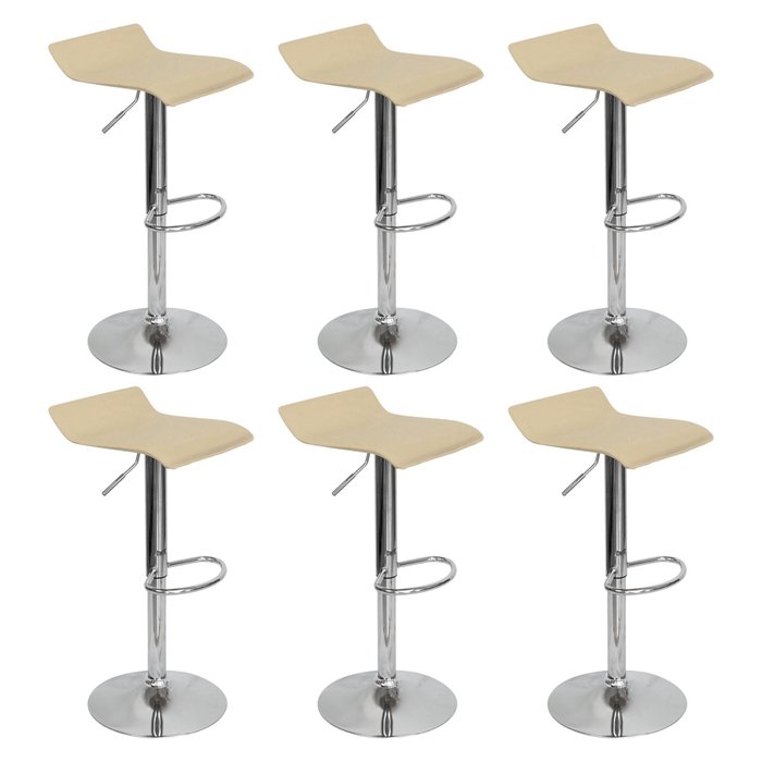 Kit 6 Banquetas Toquio Wave Enzo Belo Horizonte Recouro Giratória com Regulagem Bege