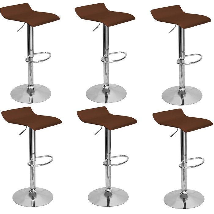 Kit 6 Banquetas Toquio Wave Enzo Belo Horizonte Recouro Giratória com Regulagem Marrom