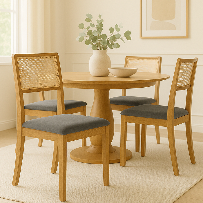 Kit 6 Cadeira Estofada Jantar Rubi Linho Madeira Maciça:cinza Cinza