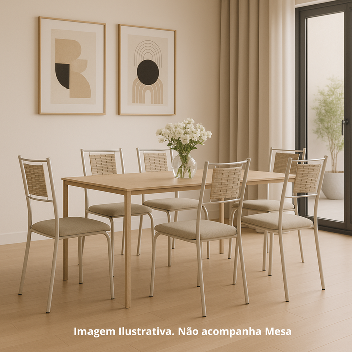 Kit 6 Cadeira Jantar Belize Assento Estofado Tecido Corino Bege