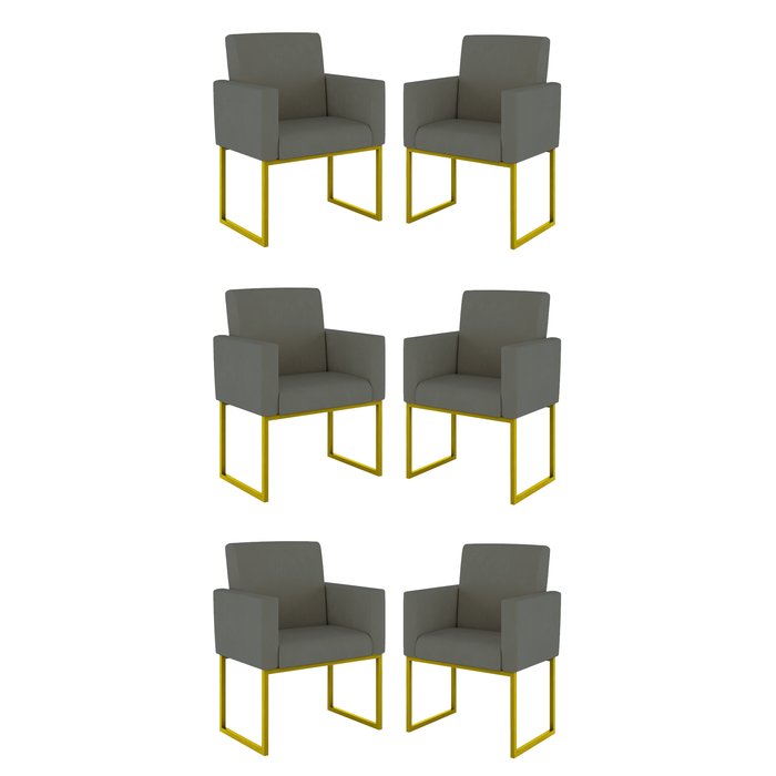 Kit 6 Cadeira Poltrona Decorativa Base de Ferro Dourada:suede Cinza