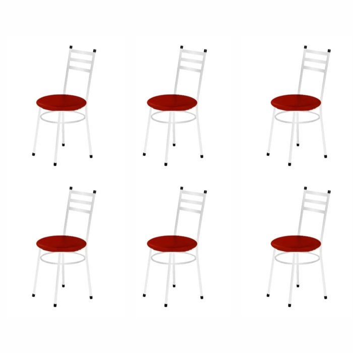 Kit 6 Cadeira Redonda Para Mesa De Jantar 135 Bran/Vermelho