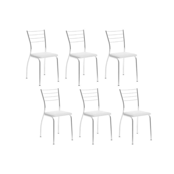 Kit 6 Cadeiras 1700 6 Un Cromado Courano Branco Prata