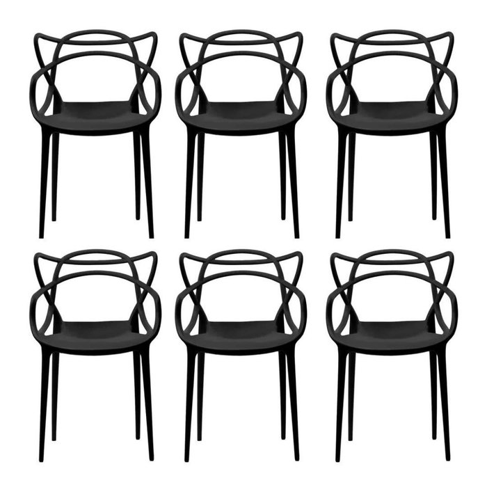 Kit 6 Cadeiras Allegra Preta Empilhável para Sala de Jantar , Cozinha e Varanda