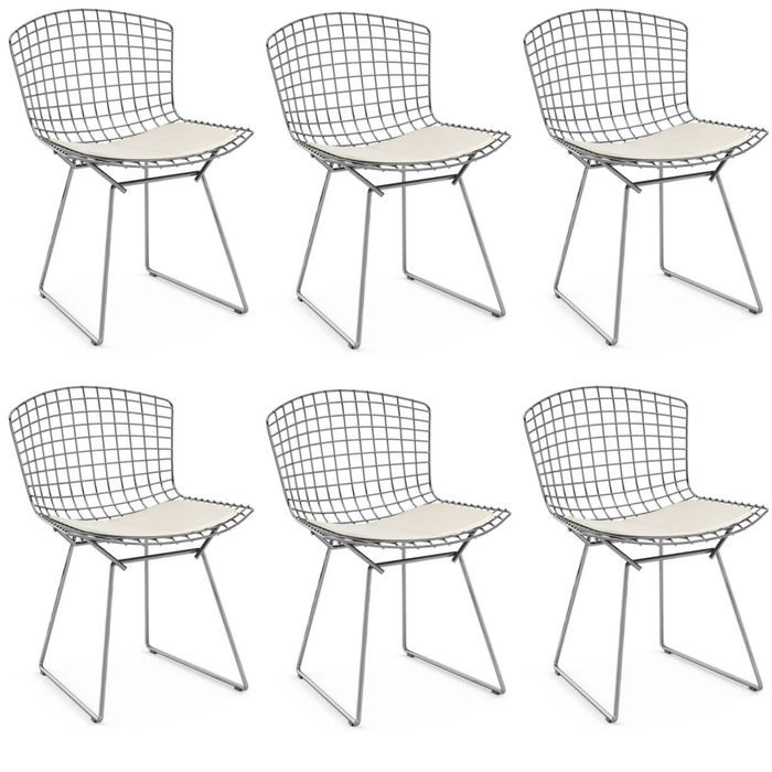 KIT 6 Cadeiras Bertoia Cromada Assento Branco