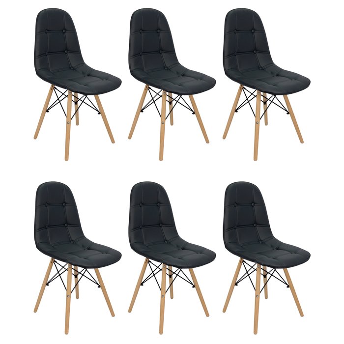 Ver imagem 1 de Kit 6 Cadeiras Charles Eames Botonê Eiffel Estofada - Preta