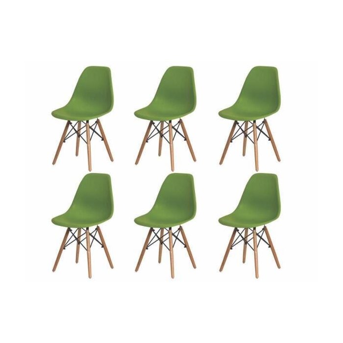 Kit 6 Cadeiras Charles Eames Eiffel Verde Base Madeira