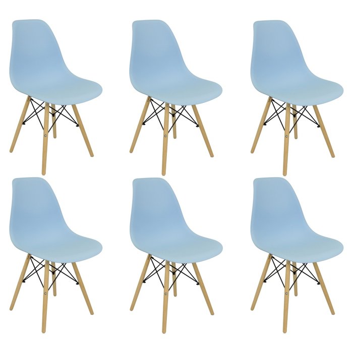 Kit 6 Cadeiras Charles Eames Eiffel Wood Design Azul Claro Azul