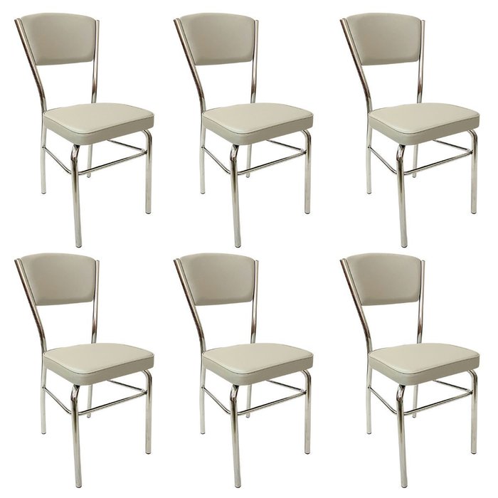 Kit 6 Cadeiras Cozinha Reforço Cromada Assento Grosso Confortável Encosto Estofado Cor Prata Prata