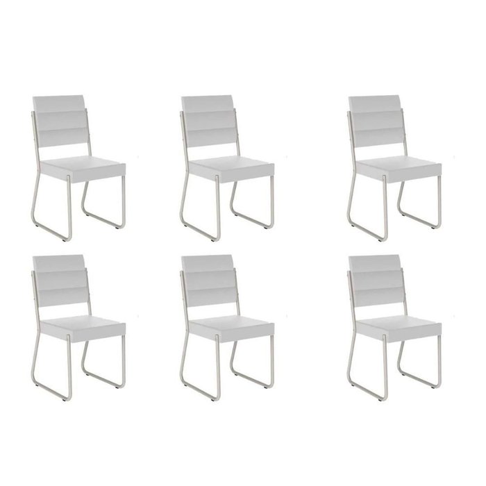 Cadeira Sala de Jantar 1736 Kit 6 Uni Prata/Courino Branco - Carraro