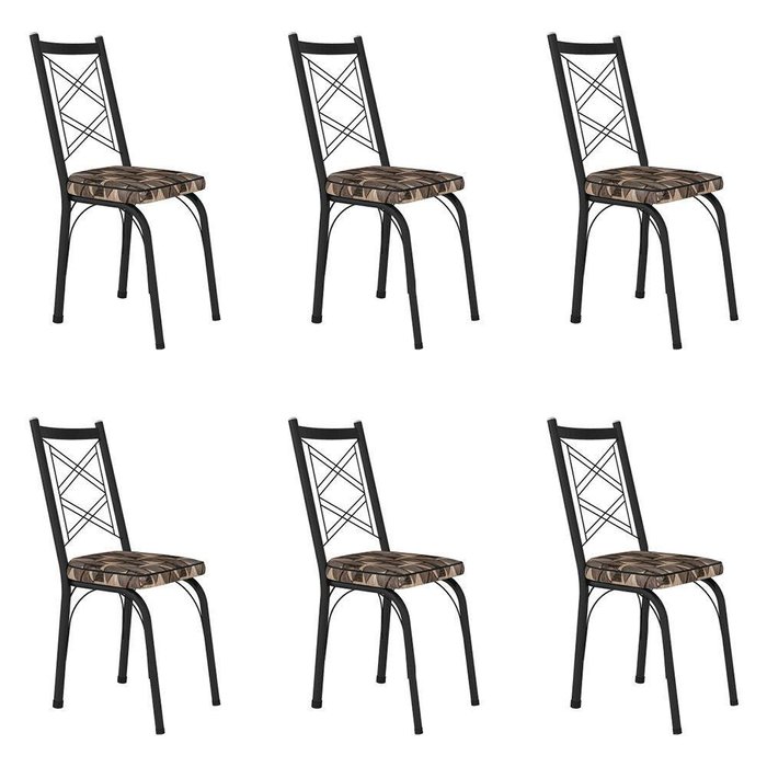 Kit 6 Cadeiras de Cozinha Delaware Estampado Imbuia Pés de Ferro Preto Imbuia