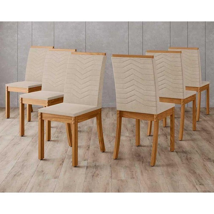 Kit 6 Cadeiras de Cozinha Isa 6 Un Nature/linho Bege - Henn