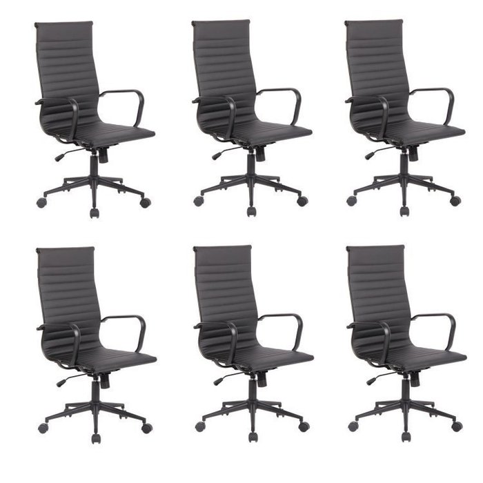 Kit 6 Cadeiras de Escritório Presidente Esteirinha em Corino Sevilha Preto