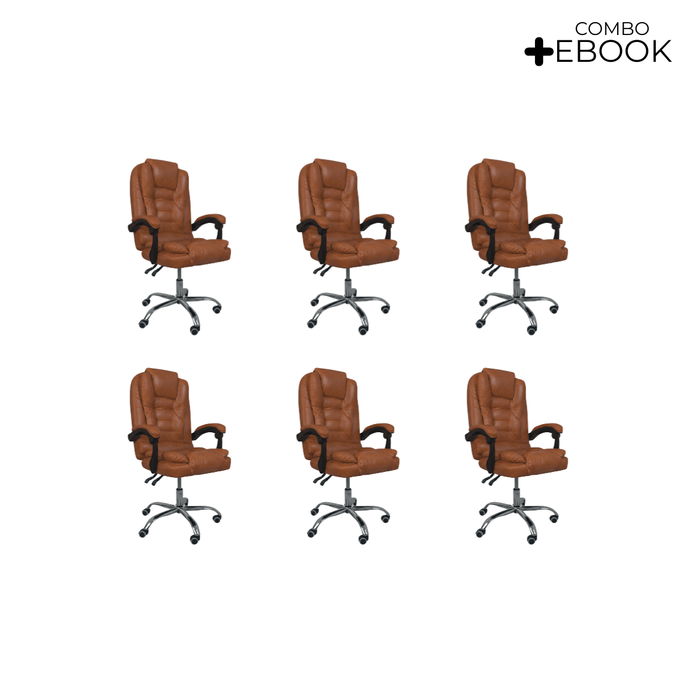 Kit 6 Cadeiras de Escritório Presidente Reclinável Ajustável - Marrom Claro Marrom