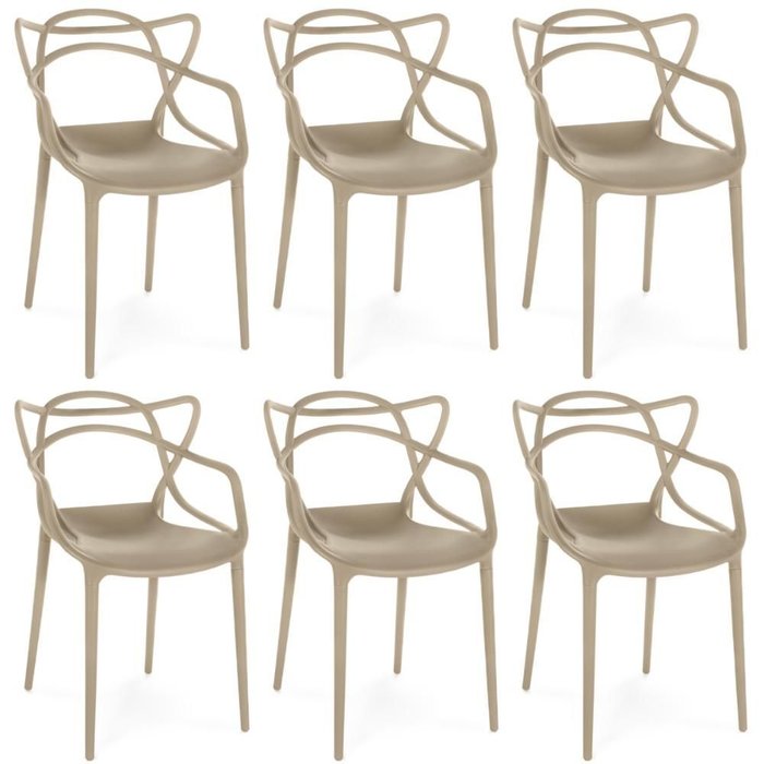 Kit 6 Cadeiras de Jantar Allegra Prática Empilhável - Nude