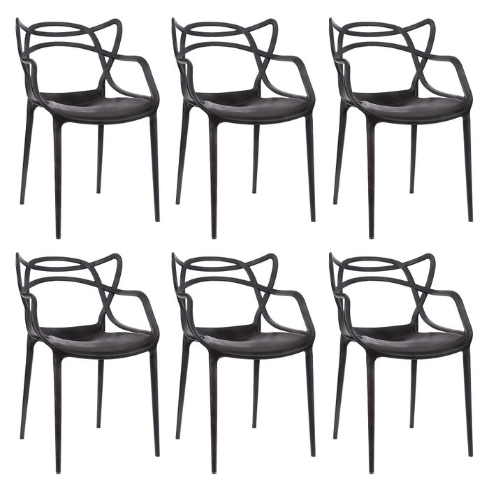 Kit 6 Cadeiras de Jantar Allegra Super Resistente Empilhável Garden Life Cor Preto