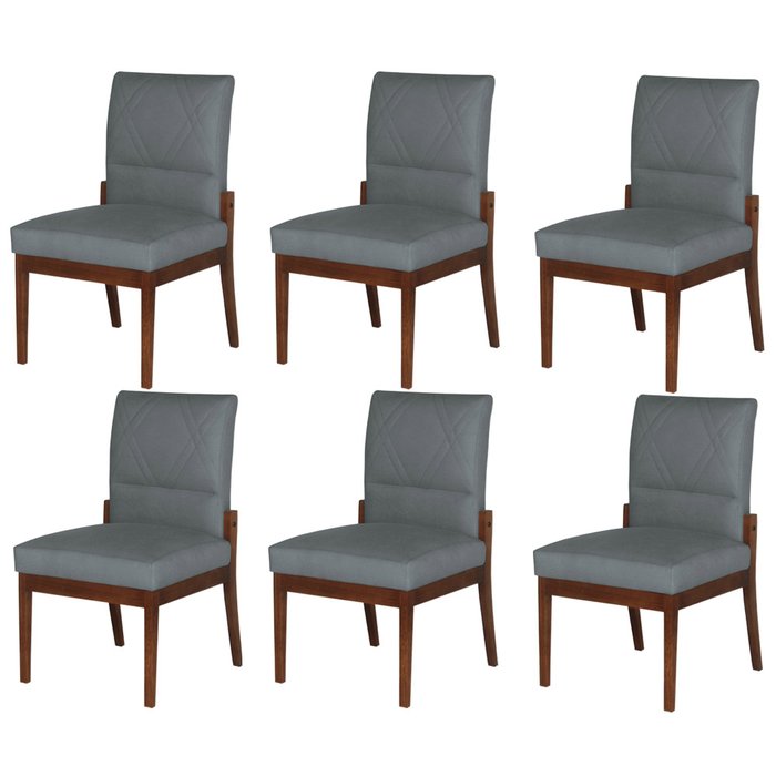 Kit 6 Cadeiras de Jantar Aurora Base Madeira Maciça Estofada Suede Cinza