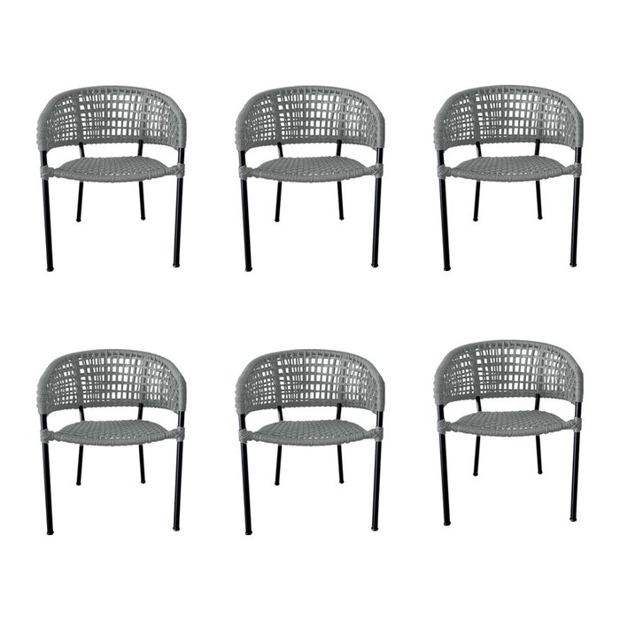 Kit 6 Cadeiras de Jantar em Corda Naútica Cinza Claro Sol Base Aluminio Preto