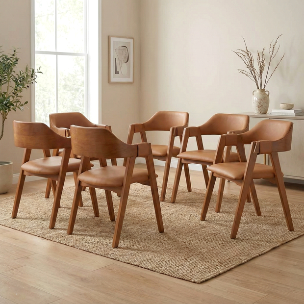 Kit 6 Cadeiras de Jantar Dália em Madeira Maciça e Corino - A solução completa para renovar sua sala de jantar com robustez e elegância prática.