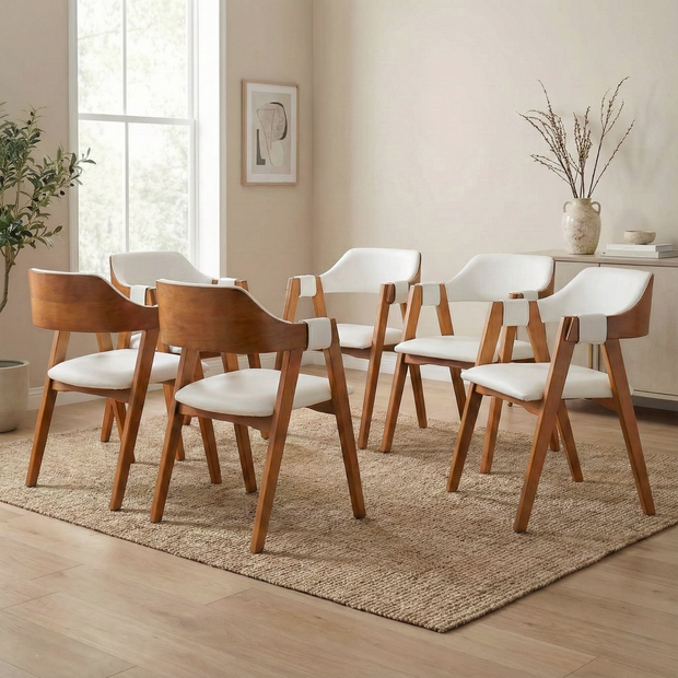 Kit 6 Cadeiras de Jantar Dália em Madeira Maciça e Linho