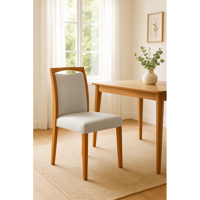 Kit 6 Cadeiras de Jantar Estofadas Jade Linho Cinza Base Madeira Maciça Mel