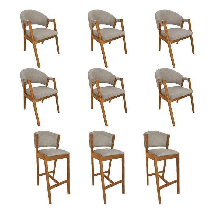 Kit 6 Cadeiras de Jantar Helen Madeira Maciça com 3 Banquetas Ana Cerejeira Premium Linho Bege BEGE