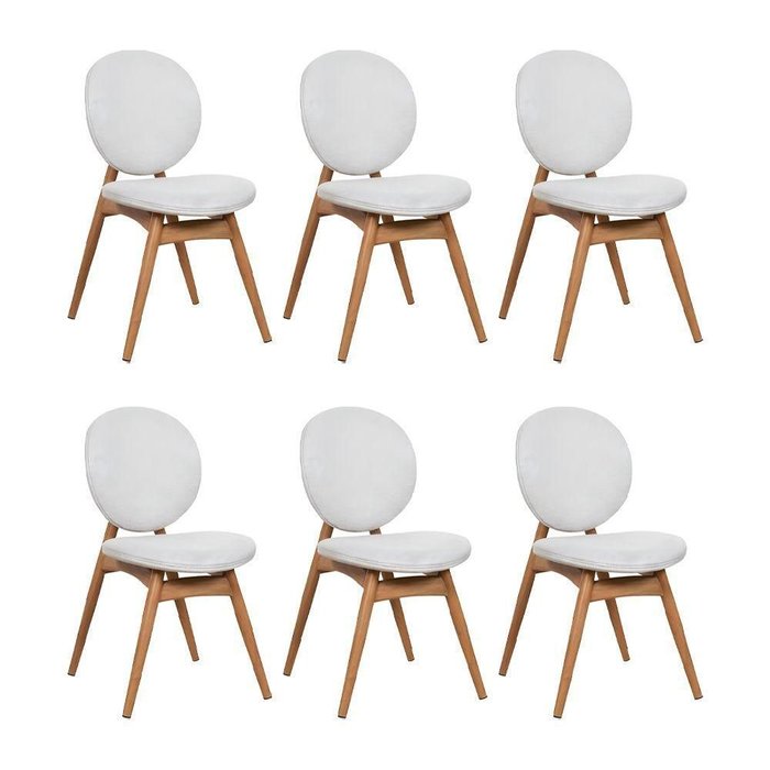 Kit 6 Cadeiras De Jantar Lotus Estrutura Aço Carbono Laminado Natural Com Estofado Linho Cru