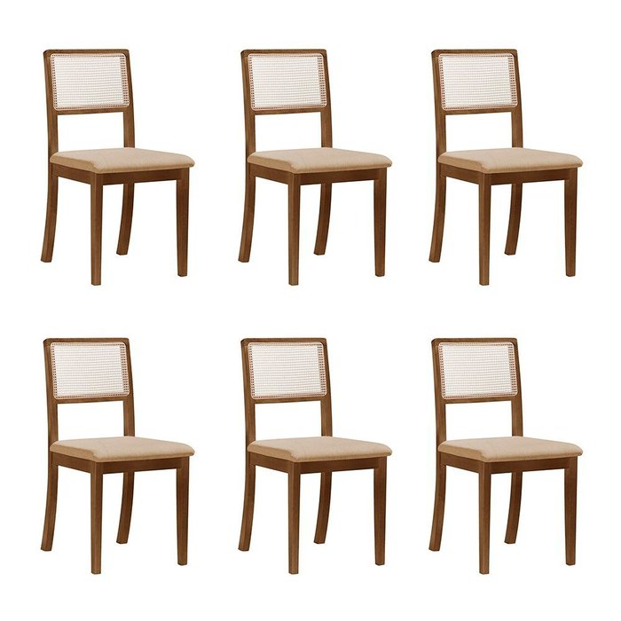 Kit 6 Cadeiras de Jantar Palha Estofadas Linho Bege com Tela Sextavada Rubi Madeira Maciça Imbuia