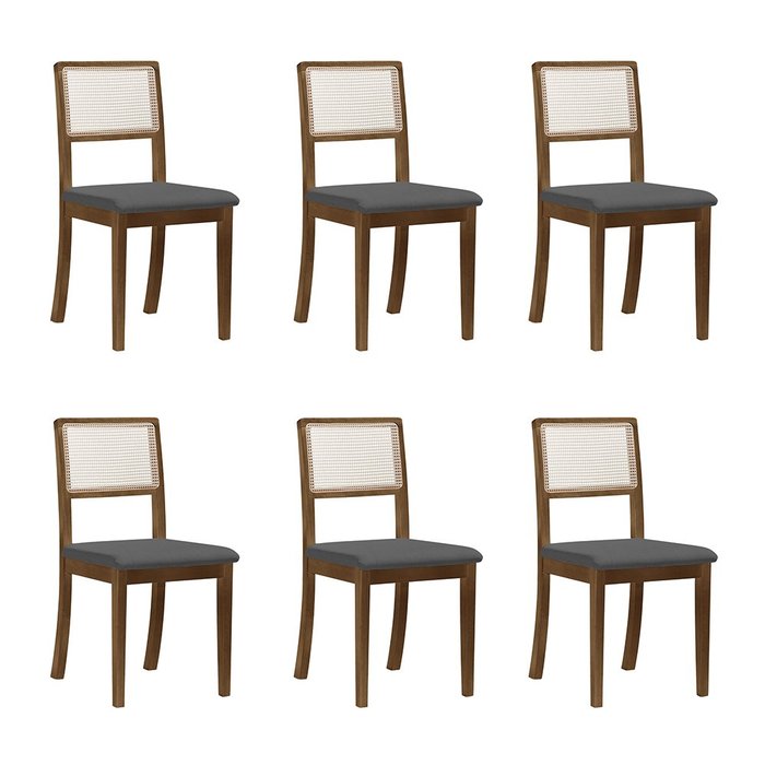 Kit 6 Cadeiras de Jantar Palha Estofadas Linho Cinza com Tela Sextavada Rubi Madeira Maciça Imbuia