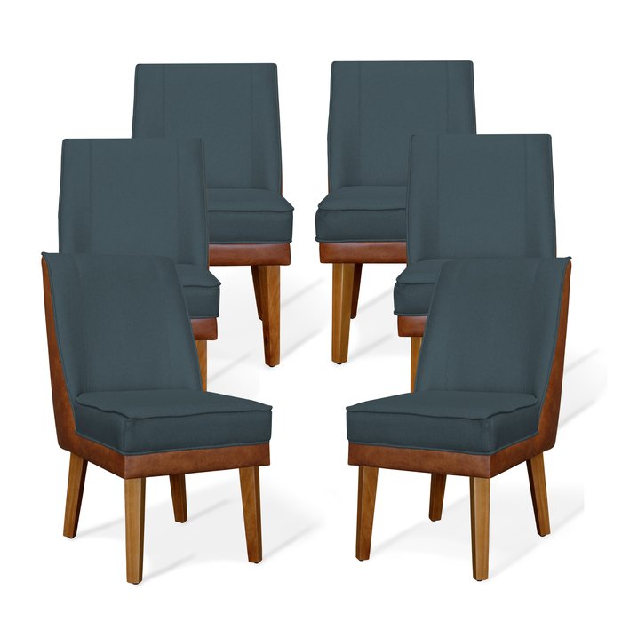 Kit 6 Cadeiras De Jantar Virgínia Compose Linho Azul Jeans e Courissimo Nozes - Meu Lar Decorações