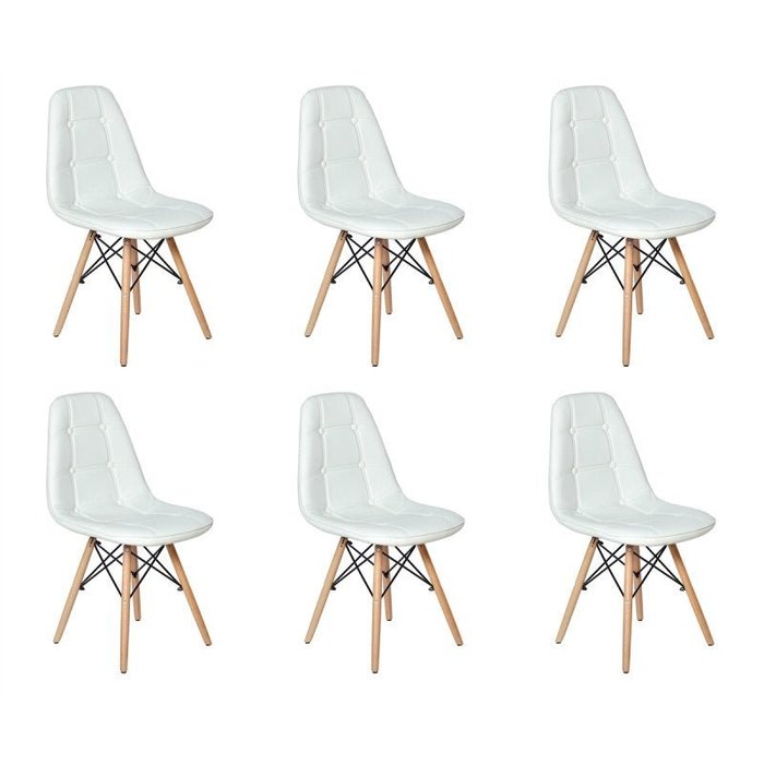 Kit 6 Cadeiras Dkr Charles Eames Wood Estofada Botonê - Branco Branco