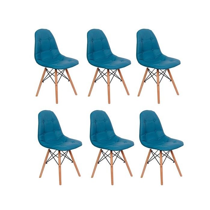 Kit 6 Cadeiras Dkr Charles Eames Wood Estofada Botonê - Turquesa