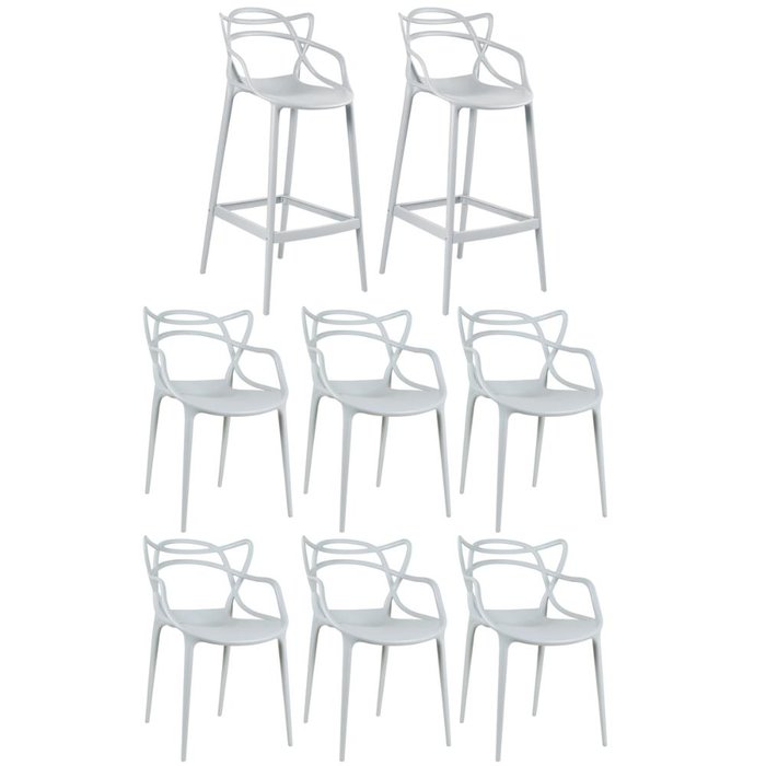 Kit 6 Cadeiras e 2 Banquetas Altas Masters Allegra - Cinza Claro