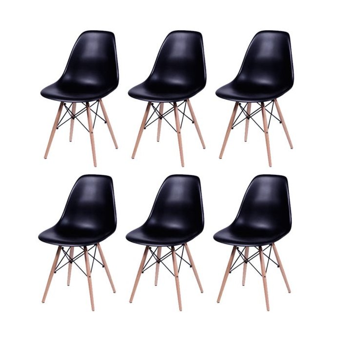 Kit 6 Cadeiras Eames Design Base Madeira Assento Preto