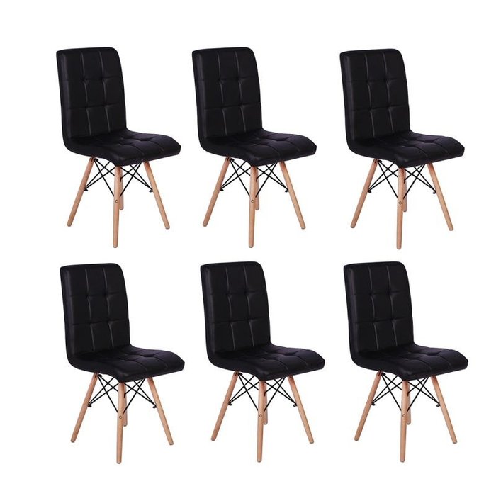 Kit 6 Cadeiras Eiffel Gomos Estofada Base Madeira - Preta