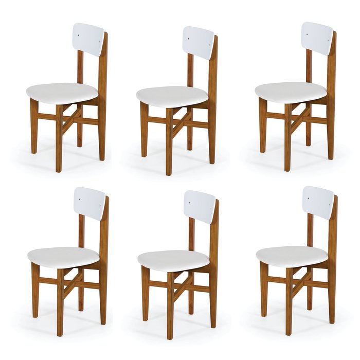 Kit 6 Cadeiras em Madeira Maciça Elisa para Sala de Jantar Branco