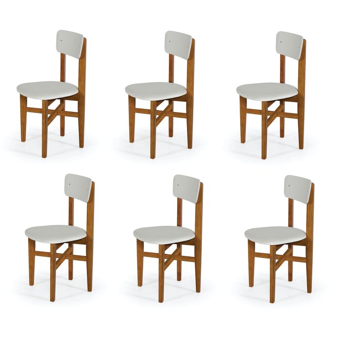 Kit 6 Cadeiras em Madeira Maciça Elisa para Sala de Jantar Off-white