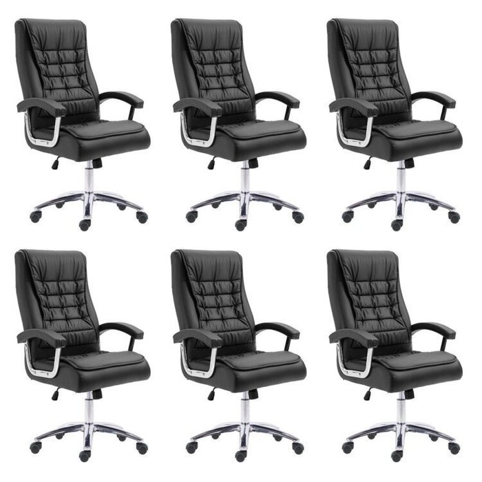 Kit 6 Cadeiras Escritório Presidente Ergonômica NR17 Corino Mola Ensacada Preto