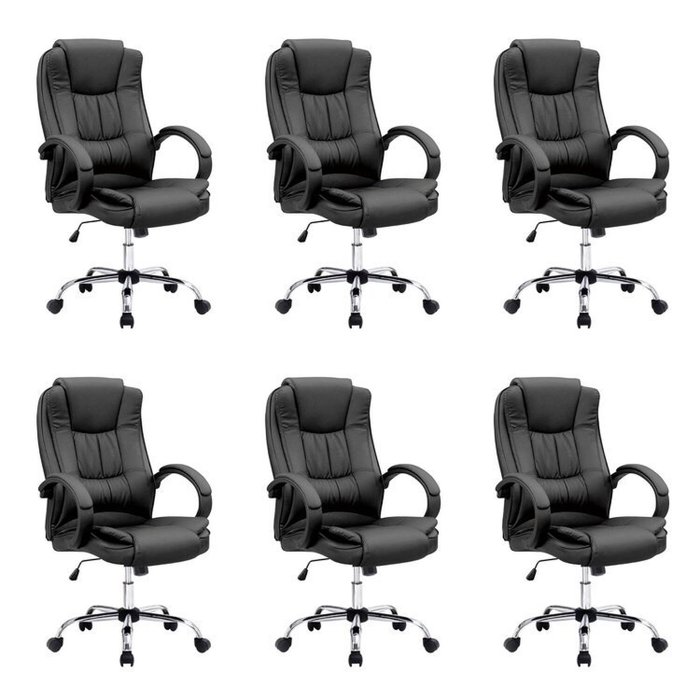 Kit 6 Cadeiras Escritório Presidente Giratória Estofada Corino Melbourne Preto