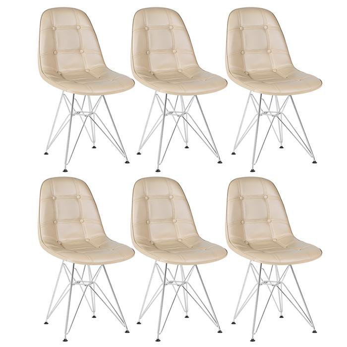 Kit 6 cadeiras estofadas Charles Eames Eiffel Botonê com pés de metal cromado Nude