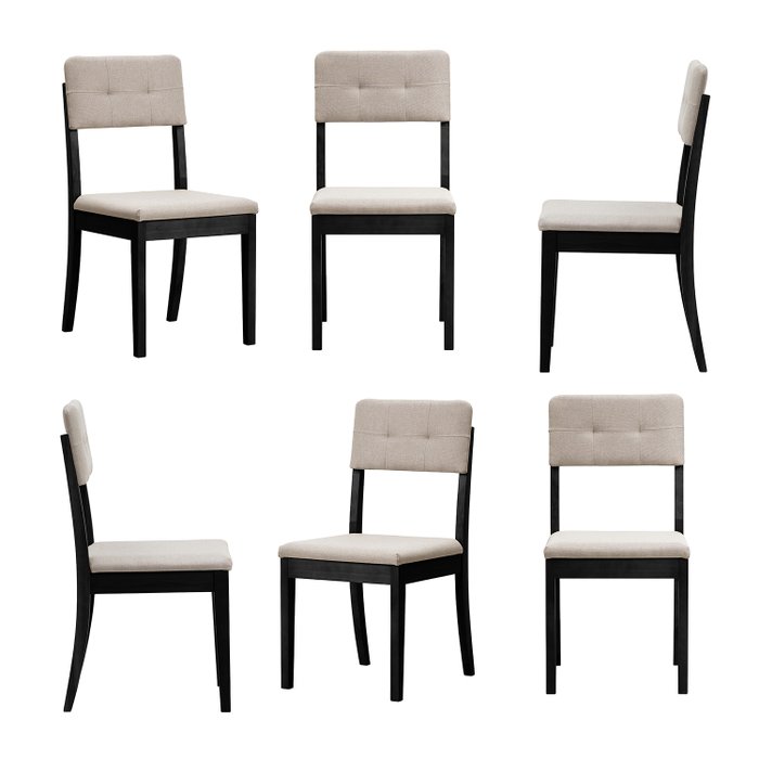 Kit 6 Cadeiras Estofadas Tiê CabeCasa MadeiraOriginals Preto/Bege Claro