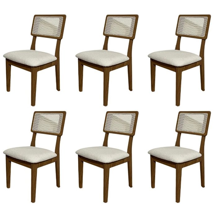 Kit 6 Cadeiras Fixas de Jantar com Telinha