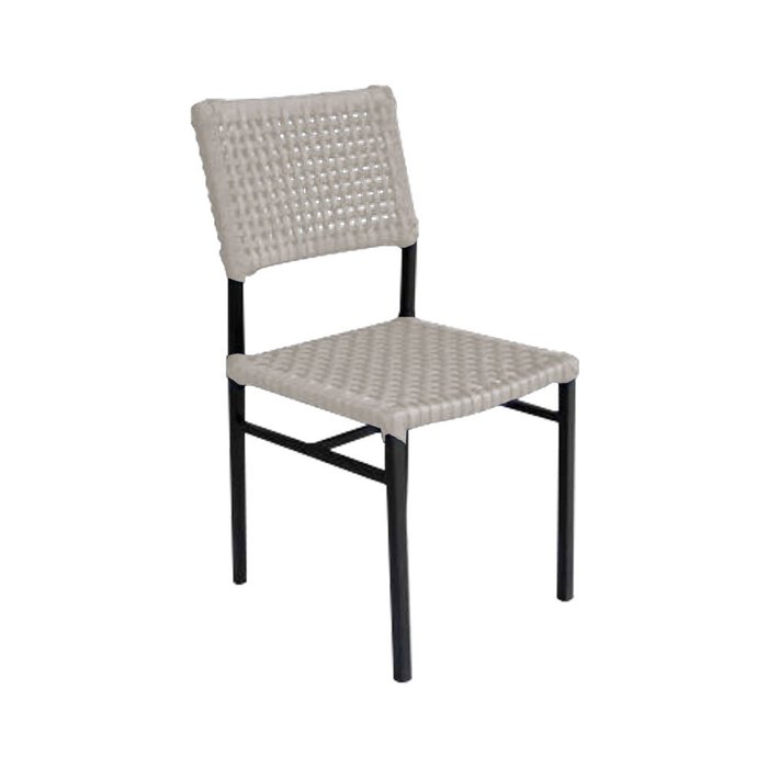 Kit 6 Cadeiras França Corda Náutica Base em Alumínio Preto/areia