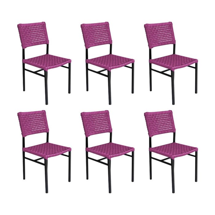 Kit 6 Cadeiras França Corda Náutica Base em Alumínio Preto/rosa