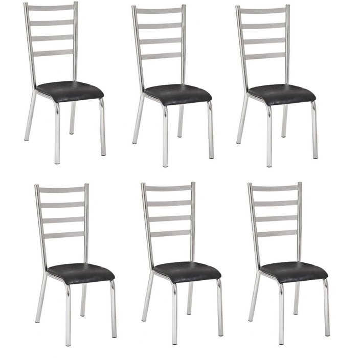 Kit 6 cadeiras Laura cromada para cozinha-assento preto