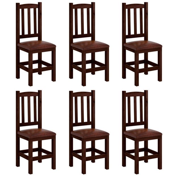 Kit 6 Cadeiras Madeira Maciça Estofado Corino Marrom Diamante Cor Castanho Nemargi