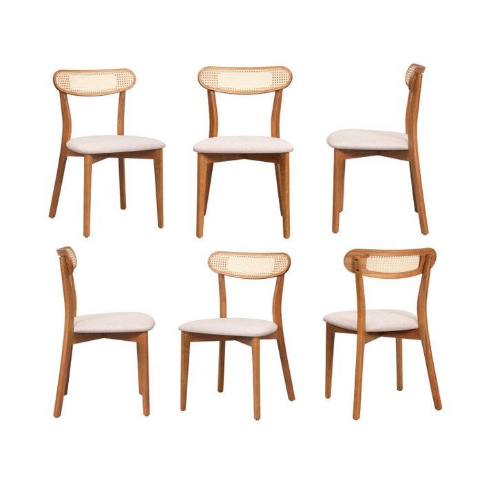 Elegante e resistente, esta cadeira é confeccionada em madeira maciça, garantindo durabilidade e robustez para o uso diário. O assento estofado proporciona conforto extra, enquanto o encosto telado em rattan traz leveza, ventilação e um charme natural ao design. A combinação da madeira com o rattan cria um visual sofisticado e acolhedor, perfeito para compor salas de jantar com estilo e personalidade.