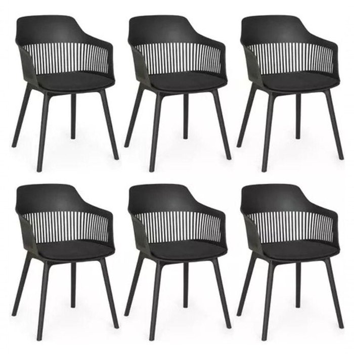 Kit 6 Cadeiras Marcela Montreal Em Polipropileno Assento Estofado Preto