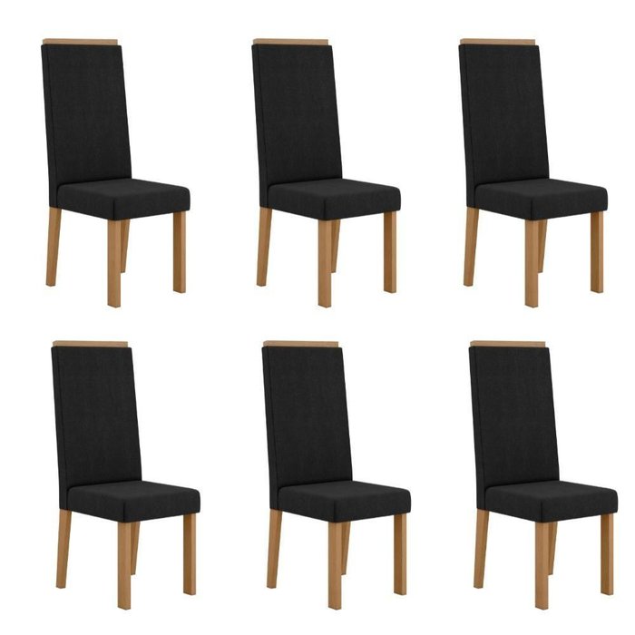 Kit 6 Cadeiras Nice com Espaldar – Tecido Veludo Suede, Pés em Mdf com Sapatilhas Plásticas Mel/ MEL/PRETO